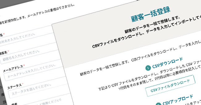 管理画面より顧客を登録します。CSVで一括登録も可能。顧客にタグを付けて検索しやすくします。